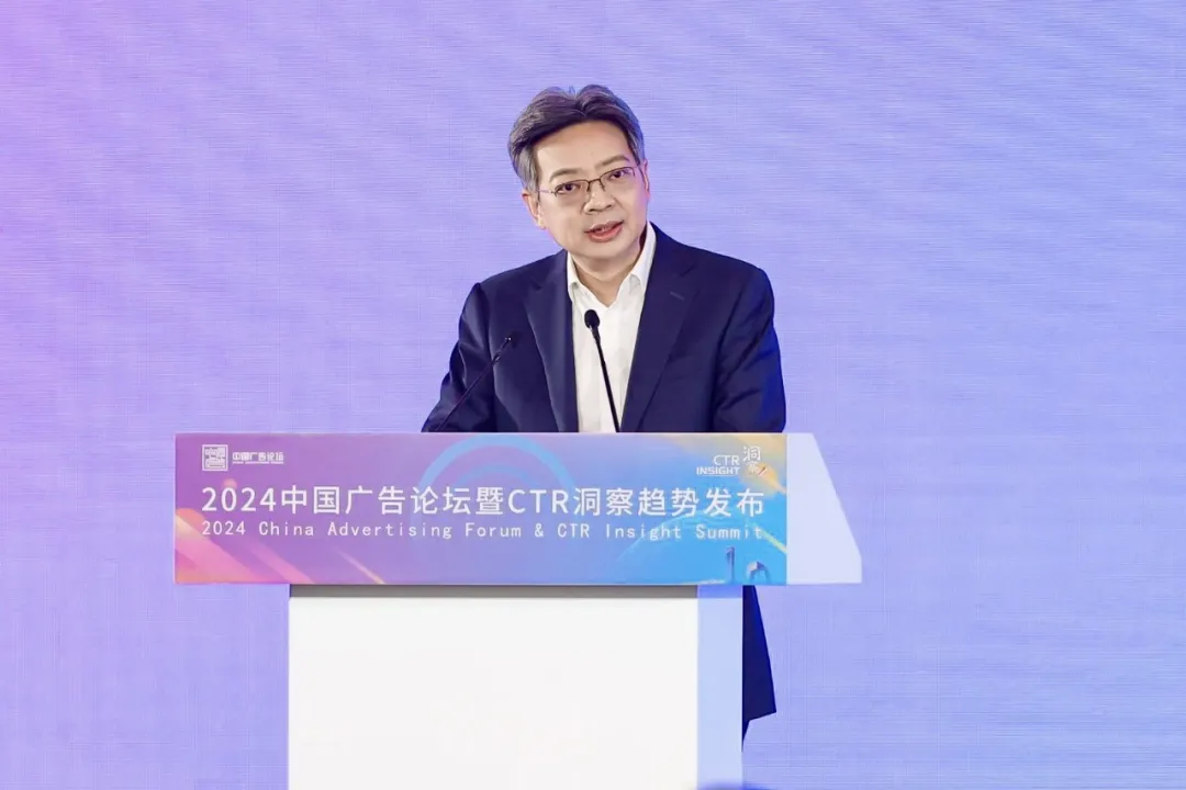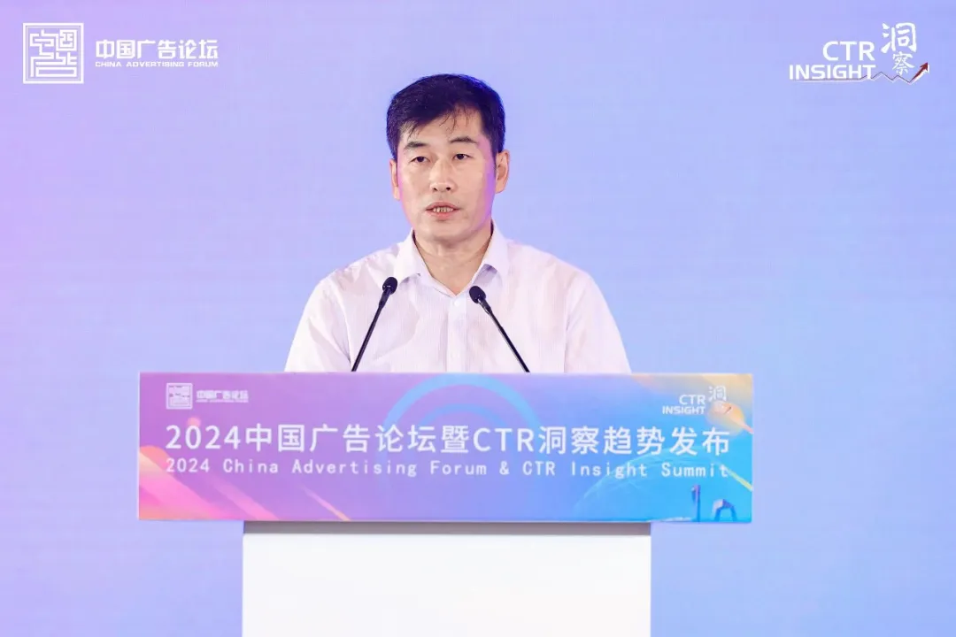 中央广播电视总台总经理室副召集人徐立军为论坛致辞。他介绍,中央广播电视总台是中国品牌最重要的展示窗口,也是最有影响力的品牌传播者和塑造者。媒体融合优势和强大的融合传播实力,是总台区别于其他任何媒体的核心竞争优势,也是总台营销创新的支点。一年来,总台创新优化一系列品牌传播项目,“品牌强国工程”、巴黎奥运营销等备受业界关注和市场认可。面对当下新的经济周期,广告行业迎来了新的机会与挑战。他认为,内容IP是品牌竞争的法宝,在渠道触点多元化的媒介环境中,在企业自身也在媒体化的进程中,企业的品牌和产品一定也要内容化,当一个品牌和产品被注入了内容IP,与大的内容IP深度绑定,才能够增强产品在消费者心目中的辨识度,实现销售转化的最大化。