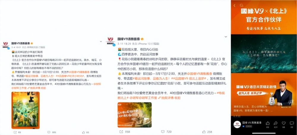 国缘V9此次与《北上》的合作,突破了传统影视合作的浅层曝光模式,而是以“人剧共生”策略,通过深度绑定代言人,将品牌精神深度融入剧情肌理,让观众在追剧过程中潜移默化地接受品牌价值观。同时,剧宣期间的系列传播动作,形成了“剧内沉浸、剧外扩散”的传播闭环,使品牌传播从单向输出转向双向共鸣。