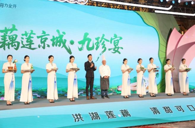 在“藕莲京城・九珍宴” 互动环节,洪湖藕汤、香煎藕夹、御膳藕丸、桂花蜜藕、清炒藕带、炕蒸藕饼、冰心玉莲、芝麻藕条、荷塘三宝,九道美食依次登场,让大家品尝到“舌尖上的洪湖”,每一份美食,都凝聚着洪湖莲藕的独特魅力。九道菜,既有家常的温暖,又有创意的巧思,每一道都是洪湖莲藕与楚菜匠心的完美碰撞。