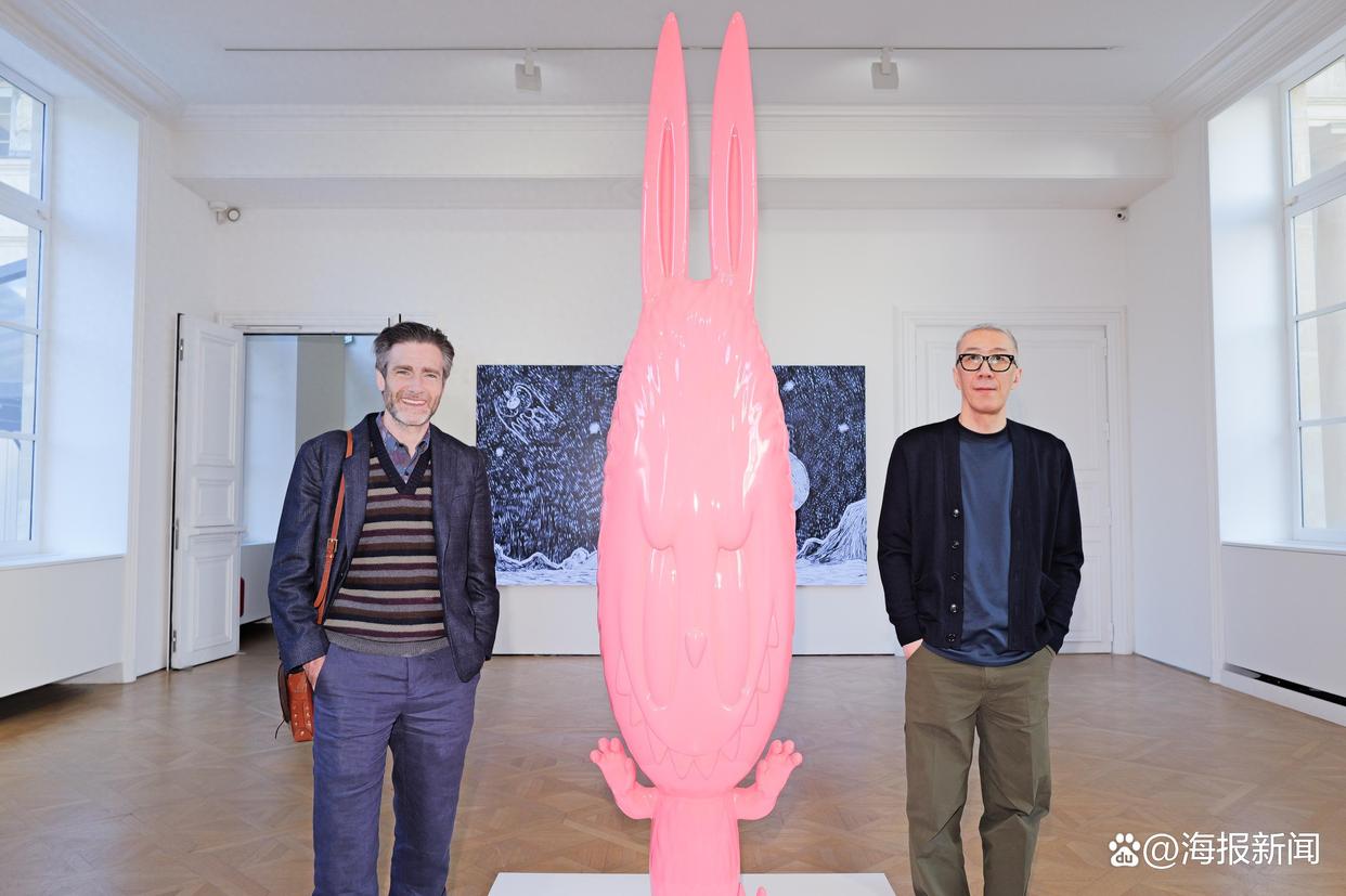 THE MONSTERS艺术家龙家升(右)与《帕丁顿熊》系列电影导演保罗·金(左)在THE MONSTERS十周年全球巡展巴黎站合影