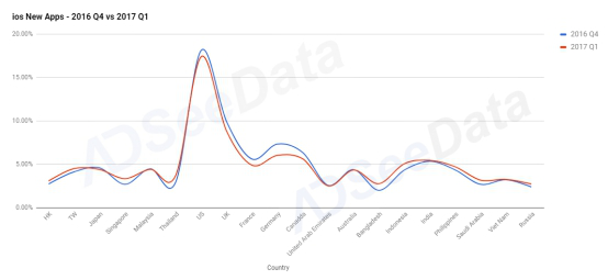 【ios New Apps - 2016 Q4 vs 2017 Q1】