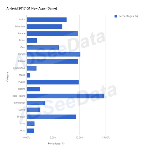 除了追踪各地区的市场推广热度分布及变化,AdSeeData针对不同平台的移动应用类别和热门游戏也进行了观察和分析。