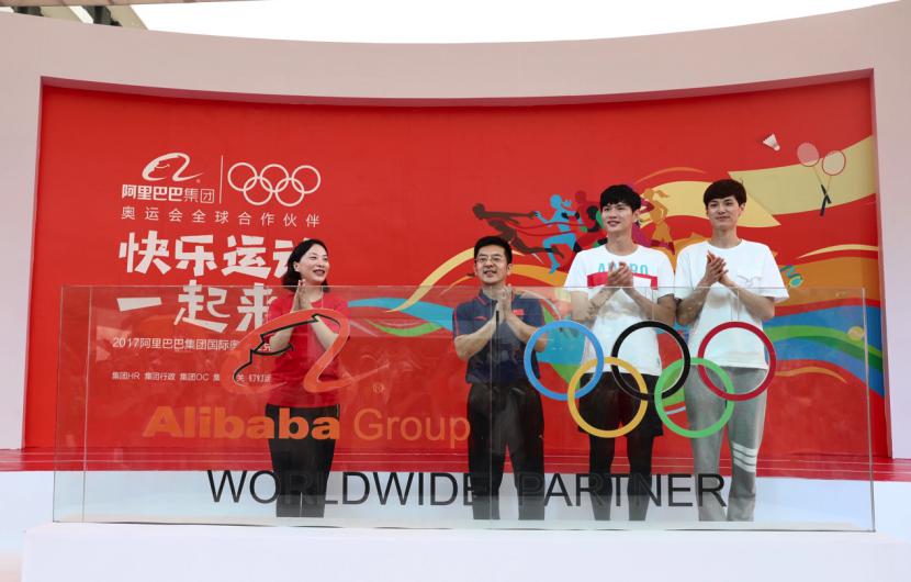 6月23日是国际奥林匹克日,国际奥委会顶级赞助商阿里巴巴集团在杭州总部大楼悬挂出巨幅奥运“五环”标志。在北京冬奥组委有关负责人、阿里巴巴集团CPO童文红、前羽毛球世界冠军鲍春来、中国击剑队男子佩剑运动员孙伟的共同见证下,阿里巴巴和奥运“五环”的组合logo正式揭幕。
