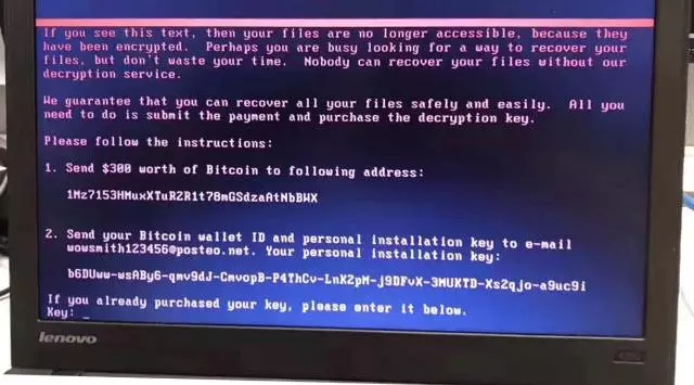 劫持者意图非常明显:每个personal installation key(个人电脑识别码)解密的代价为300美元比特币。
