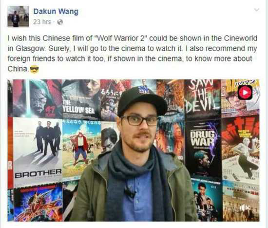除了在国内票房口碑双丰收,《战狼2》的火热还从国内燃到了海外。电影在澳大利亚和东南亚等国上映后,不少人抢在第一时间观看首映,悉尼和墨尔本的影院更是场场爆满,出现了一票难求的盛况。这股“战狼热”更引来英国的网友留言称,“求上映!想带着外国朋友去电影院看!”