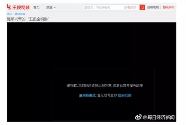 昨日,据消息,乐视高层透露,导致乐视视频无法播放的原因系欠费被断网,目前已在恢复中,很快会解决。
