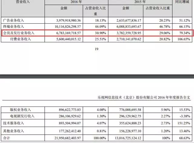 此次事故,对于乐视网绝非小事。小编注意到,乐视网2016年年报显示,公司会员及发行业务收入达到67.8亿元,占营业收入比30.9%,较2015年同比增长近80%。