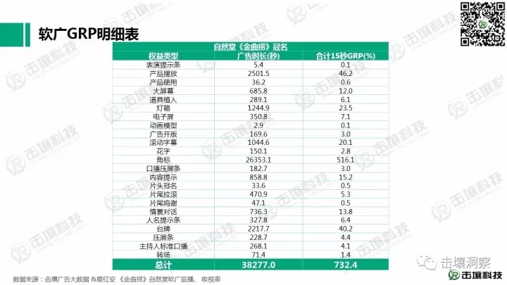最后附上自然堂2017年所有内容合作软广GRP明细表: