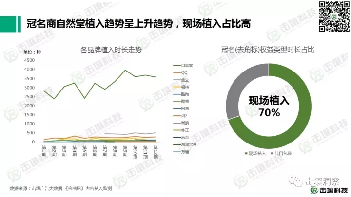 而与“主战场”江苏卫视《金曲捞》的冠名合作中,自然堂以现场植入为主,逐期增加曝光时长。