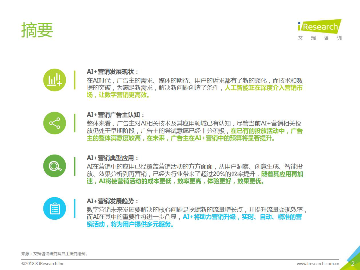 完整版《中国AI+营销应用落地研究报告》下载地址:http://report.iresearch.cn/report/201808/3259.shtml