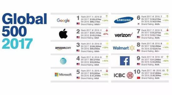 日前, 从事品牌价值评定的英国专业咨询机构“Brand Frinance”推出了2017年度的全球品牌500强榜单,谷歌排名第一,品牌价值1094.7亿美元,苹果、亚马逊分裂二三位,仅有55家中国品牌上榜。