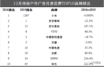 从品牌角度来看,小米的投入力度之大让人不可忽视,同比超过1000%的涨幅体现了其整体品牌策略的用意。