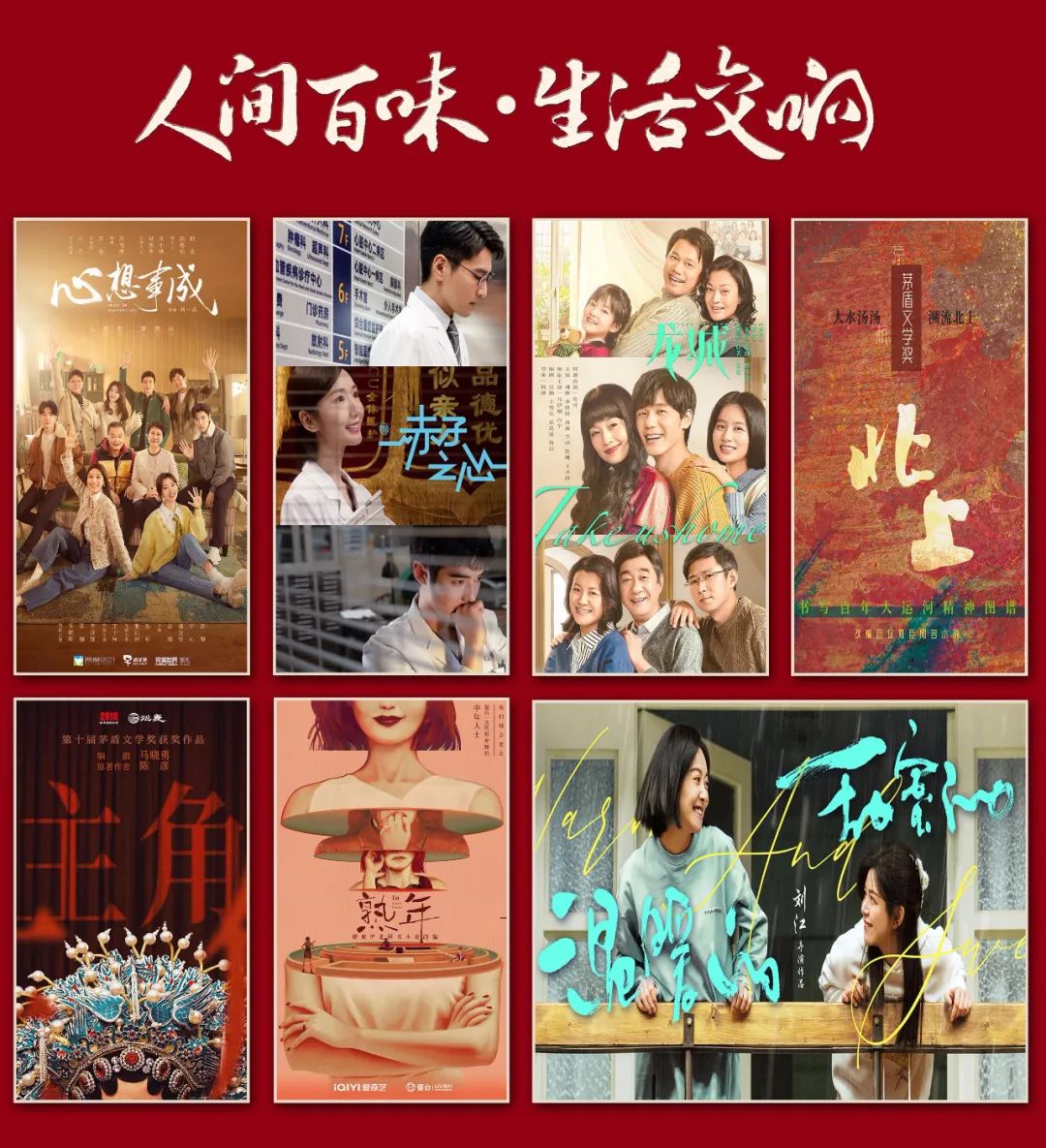 “人间百味·生活交响”版块立足现实社会生活日常,推介了讲述性格迥异的姐妹俩相互陪伴、共同成长的电视剧《心想事成》,展示心脏科中生代医生们精进之路的都市医疗剧《赤子之心》,还有依托经典文学作品、改编自笛安小说《龙城》三部曲的电视剧《龙城》,改编自徐则臣的茅盾文学奖同名获奖小说、由赵冬苓编剧的电视剧《北上》,改编自著名作家陈彦获茅盾文学奖同名小说的电视剧《主角》,根据伊北同名小说改编、全景式展现熟年一族面临的现实问题的电视剧《熟年》,探讨爱情与婚姻价值的都市情感剧《温暖的甜蜜的》等。这些贴近生活、亲近百姓的生活剧让烟火气浸润人心,用温暖情怀演绎世间百态,彰显人性光辉。