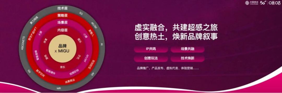 技术是支撑,一方面,中国移动的大数据系统,可以支持用户洞察和数据分析,让我们更了解市场,另一方面,数字传感、沉浸式体验、数智分身等新技术,也更能激发和创造出更多新的玩法。