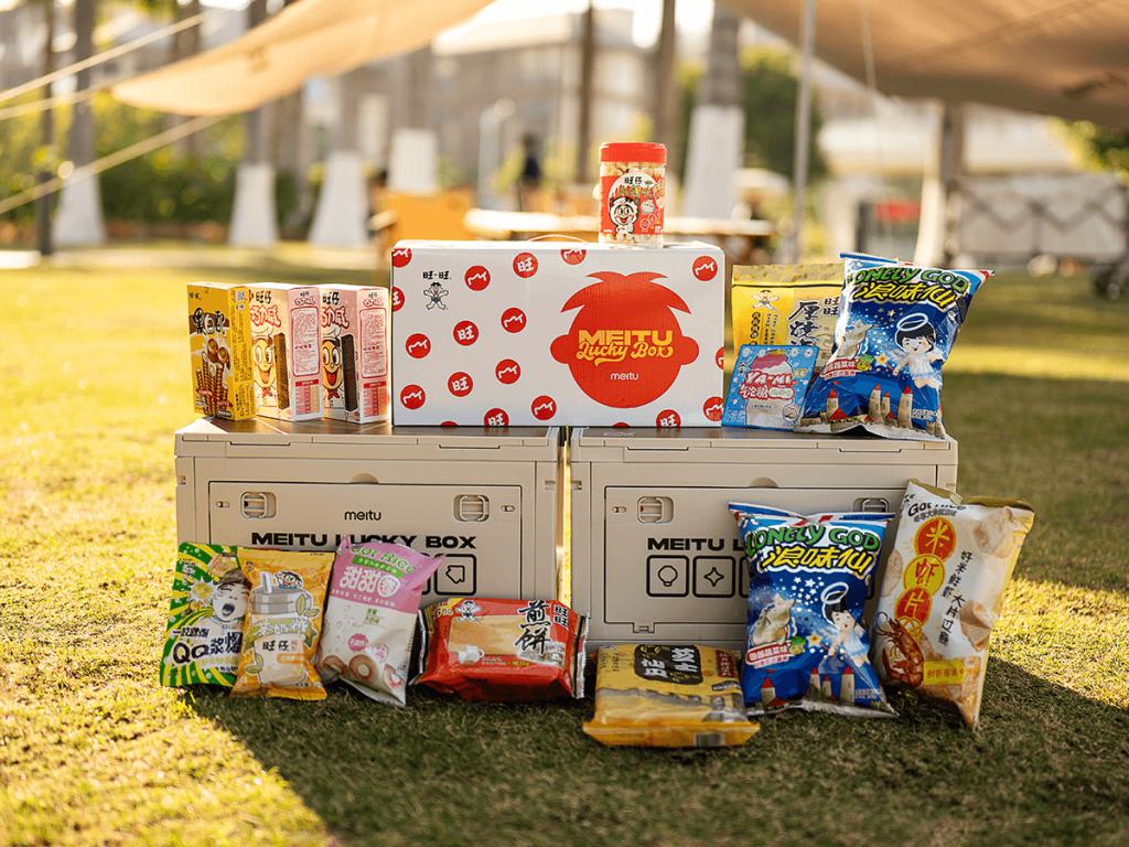 美图推出的新年礼盒“meitu lucky box”,则以户外为主题,礼盒可以作为露营箱、便携桌子,还可变成大容量收纳箱。美图还联合旺旺定制了零食大礼包,集合了各种经典零食。