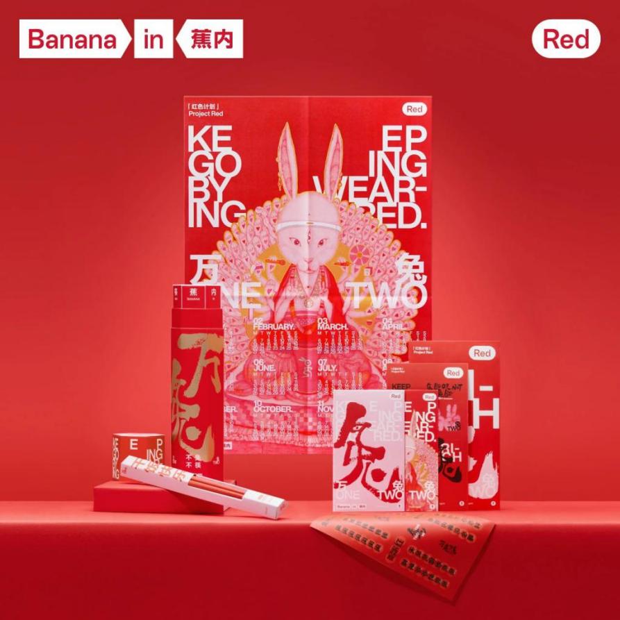 蕉内则推出了走红盒和走运盒,并与艺术家设计了兔年周边,主要有“兔Do List”手账本、“兔Be The King”扑克牌、“不兔不筷”筷子套装、“兔Rich”、“兔You”红包、“万兔求贴贴”贴纸、365天红历,过年仪式感,瞬间拉满。