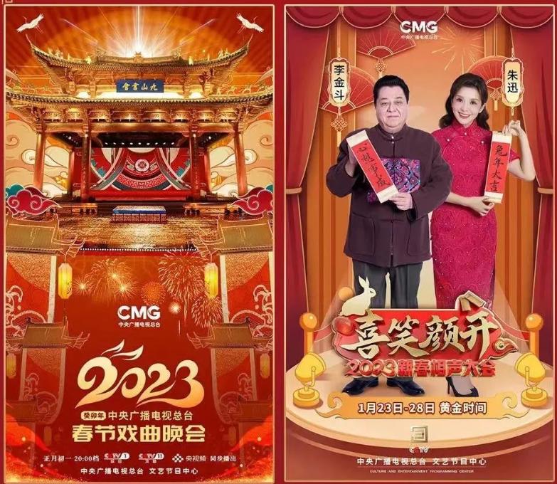 1月22日,CCTV-1、CCTV-戏曲同步播出《2023年春节戏曲晚会》,汇聚全国近30个戏曲剧种、70余个院团院校,集结百余位戏曲名家、新秀。CCTV-3播出《兔逢新春喜事来——2023新春喜剧之夜》,全国网收视率同时段排名第一。1月23日至27日连续播出的《喜笑颜开——2023新春相声大会》老段新说,全方位展现相声演员的基本功。