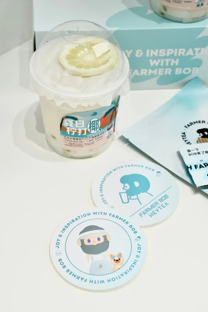 喜茶与知名潮玩品牌寻找独角兽(FINDING UNICORN)旗下FARMER BOB,联名推出了限定新品“夏日柠打椰”。
