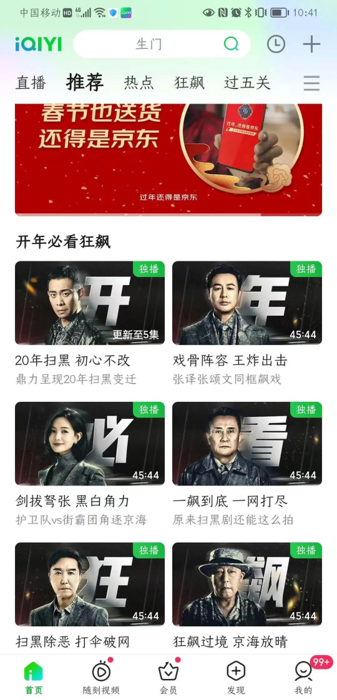 与此同时,《狂飙》播出期间,站内多项数据始终保持上升姿态。据爱奇艺官方公布的数据,仅春节假期,《狂飙》就带动了爱奇艺剧集频道播放时长环比增长33%。