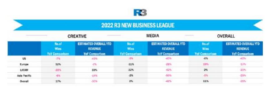 总体而言,新业务的价值同比下降了35%(含媒介与创意类),但比稿量自2021年增加了11%。