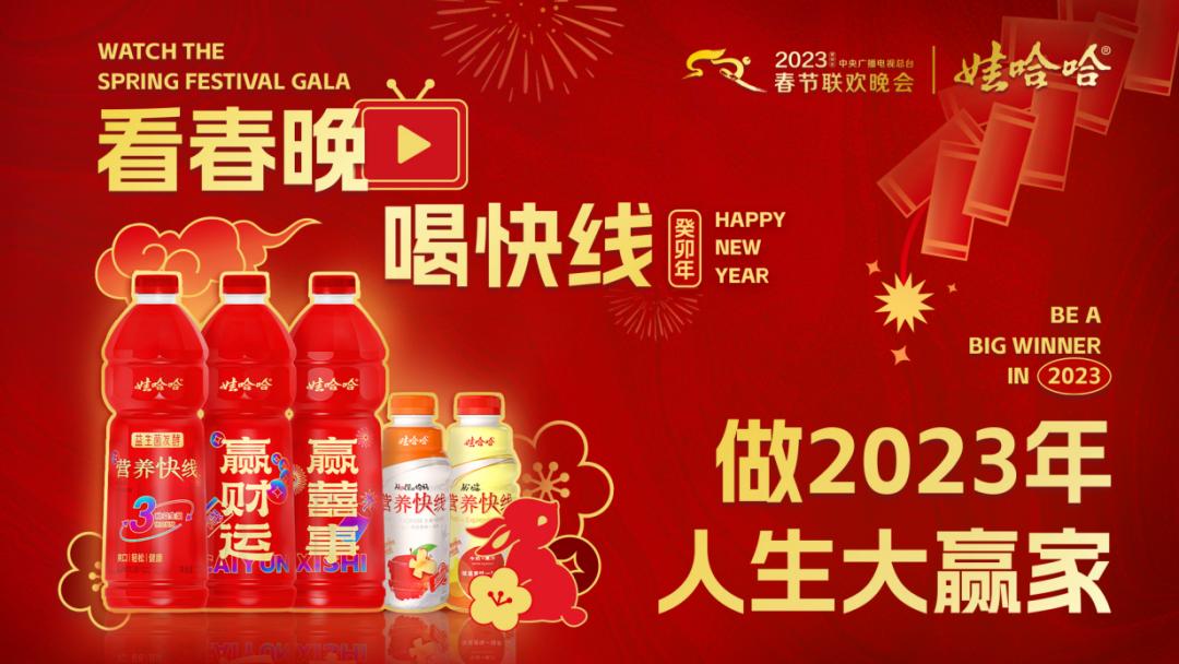 2023年,娃哈哈携全新益生菌发酵营养快线再登总台兔年春晚,打出“人生赢家”的吉祥标签,国民消费品牌搭载国民年度盛会,借势春晚+洞察情感+深挖文化,多点共同发力获得了兔年春节营销品效双赢。围绕“赢”这一吉祥的传播核心点,娃哈哈将春节营销的火力拉满。在4个多小时的春晚直播中,娃哈哈营养快线化身当晚“气氛担当”,频频露出,与全国观众一起分享团圆喜悦,品牌力大获提升。