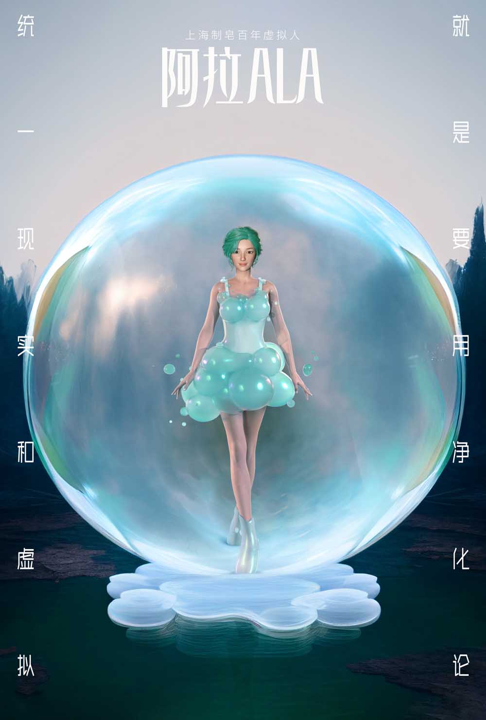 上海制皂在100周年之际,推出虚拟人代言人阿拉ALA,是首个从泡泡中诞生的虚拟人,