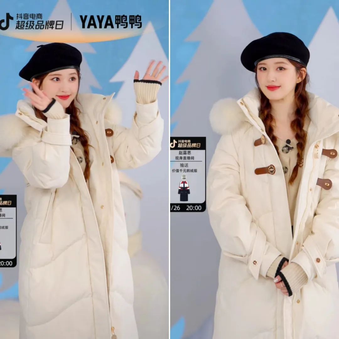 超品日期间,鸭鸭不仅将该款羽绒服送到了东方甄选、贾乃亮、郝邵文、刘媛媛等的直播间,进一步为单品聚拢人气,还联合代言人刘畊宏,发起“疯狂鸭鸭舞”话题挑战赛。11月26日,鸭鸭更是把明星代言人赵露思邀请进了官方直播间,进行专业的产品讲解。