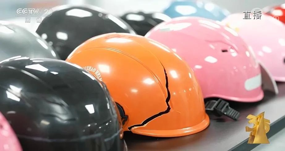 #315晚会#选取了市场上热销的电动自行车头盔进行检测:①是吸收碰撞能量性能测试,测试人员将头盔佩戴在头模上,拉升至1.6米的高度进行释放,模拟骑乘人员摔倒时,佩戴安全头盔的头部与地面碰撞接触的场景。一款红色头盔应声开裂,产生了一条20多厘米长的裂痕。记者采访发现,一些头盔厂家为了压缩成本,使用回收料等劣质材料进行生产;②是耐穿透性能测试,测试人员将钢筋头拉升至1米的高度进行释放,模拟头盔遇到尖锐物体时,对佩戴者头部的保护能力。有8款头盔达不到新国标要求,有的几乎被劈成两半;③是测试电动自行车的佩戴装置,模拟在发生事故时,头盔能否固定在佩戴者的头上进行持续保护。共有16款不符合新国标要求;④是护目镜耐磨性测试。有16款不符合新国标要求,磨损后的镜片透光性明显降低,成像效果大打折扣。