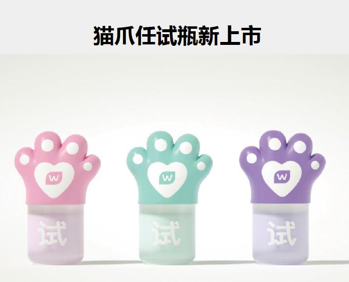 以美妆个护品类为例 ,消费者在购买产品前可以在屈臣氏门店的任试台充分感受、试用彩妆,香水,护肤品等。而像洗发水这类不方便当场试用的产品,消费者还可以利用“任试瓶”带回家使用。值得一提的是,任试瓶以可爱的“猫爪”作为瓶身设计,且采用可回收环保材料,更好迎合年轻人的审美和喜好。
