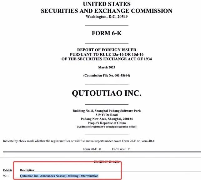 公告显示,根据这封信,除非公司要求对上述决定提出上诉,否则公司的美国存托股票将在2023年3月23日开市时暂停交易,并向美国证券交易委员会提交25-NSE表格,该表格将取消公司证券在纳斯达克股票市场的上市和注册。趣头条已选择不对上述决定提出上诉。