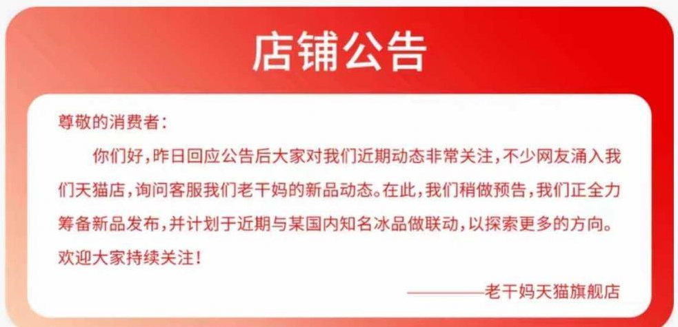 如今,消费者印象中再传统不过的老干妈也想来凑热闹。3月17日,老干妈天猫官方旗舰店发布公告称,老干妈内部正在全力筹备新品,并计划在近期与国内某知名冰品企业联动。