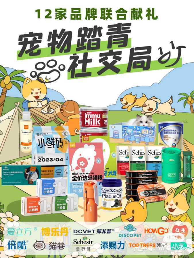 以宠物赛道为例,12家宠物品牌组成“宠物踏青社交局”,在宠物猫狗踏青的场景中融入实用的产品,比如宠物水杯、益生菌、洁牙主粮,主食罐、羊奶粉等,打包宣传售卖给“懒人一族”,在一定程度上激发了消费者的分享与购买欲。