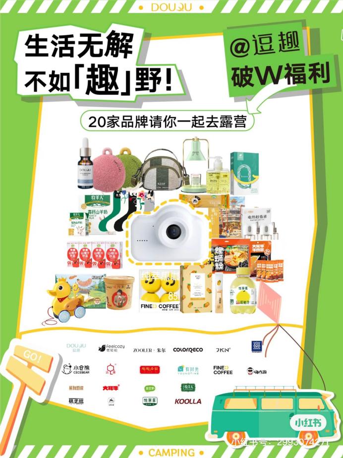家居品牌“觉轻松”、日用品牌“小仓熊”、玩具品牌“美乐雅”等20家新品牌组织“生活无解、不如“趣野”的线下露营活动,同时庆祝战痘品牌“逗趣”小红书粉丝破万。
