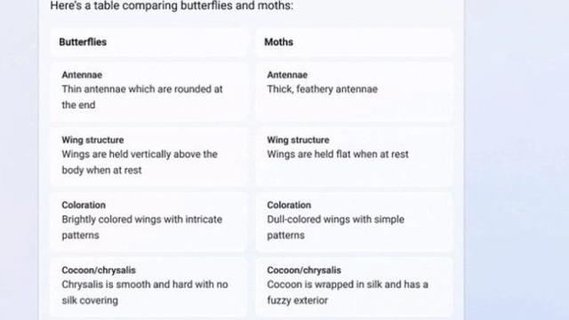 微软对必应聊天中的答案引入了更丰富的格式支持。在“更有创造力”选项中,用户可以看到必应使用粗体、项目符号列表和表格来提供有优秀的答案。