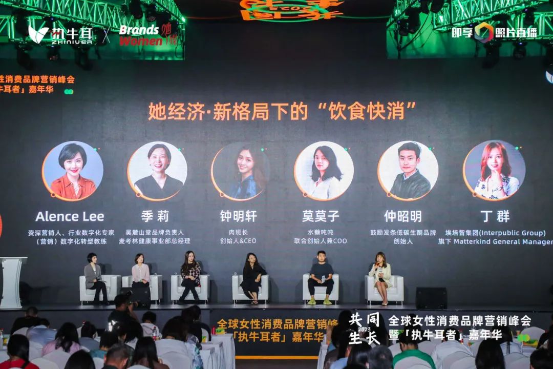 峰会首场前瞻论坛深度探讨了“她经济”格局下的“饮食快消”。资深营销人、行业数字化专家、(营销)数字化转型教练 Alence Lee作为本场圆桌主持嘉宾,对话吴麓山堂品牌负责人、麦考林健康事业部总经理季莉、鼓励发条低碳生酮品牌创始人仲昭明、肉班长创始人&CEO 钟明轩、水獭吨吨联合创始人兼COO莫莫⼦,以及埃培智集团(InterpublicGroup)旗下Matterkind General Manager丁群,探讨了面对女性消费者高涨的消费热情,品牌应该如何持续地“俘获芳心”、以期长远发展等话题。(请持续关注我们Get完整版对话精华内容)