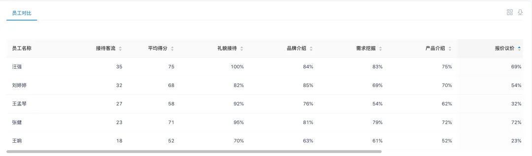 门店智能“盯盘”:由于房产人员的业务对接流动性特征,门店管理者对置业顾问的业务“盯盘”就变得困难。利用讯飞iCase会话智能系统2.0,该房产可以观察和统计到每个置业顾问的总体接待情况(接待客流、服务时长等)、置业顾问对每个访客的接待情况(报价顺序、话术语言、客户反馈正负向等),形成门店智能化接待管理提效。