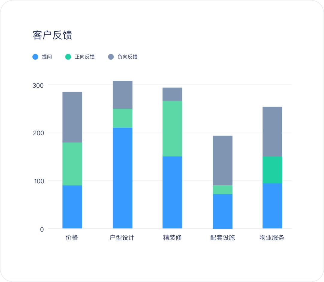 楼盘营销建议指导:访客在沟通中会反馈很多对房子的需求看法,尤其是在精装修上的看法,如设计、品牌、布局的看法。基于讯飞iCase会话智能系统2.0的整体统计,会对后续新开盘设计和新楼盘定位提供指导。