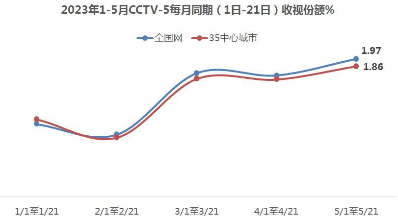 近期,2022-2023赛季CBA季后赛总决赛、2023年苏迪曼杯世界羽毛球混合团体锦标赛、2023年世界乒乓球锦标赛等备受关注的赛事相继举行,吸引了亿万观众收看。中央广播电视总台CCTV-5体育频道收视份额不断走高,5月份(截至21日),频道全国网收视份额1.97%,35中心城市收视份额1.86%,均创今年以来每月同期新高。