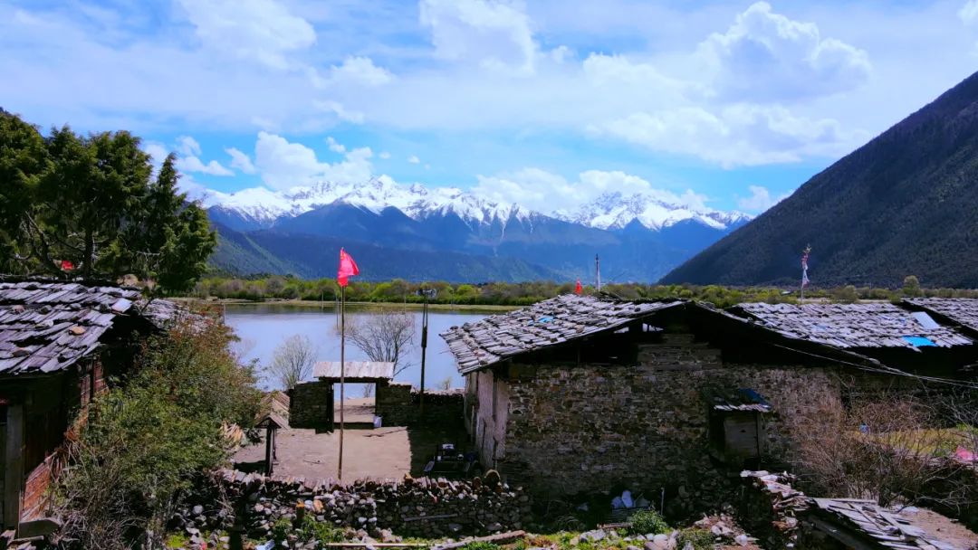 剧作《雪莲花》的故事发生地——朗嘎县巴古乡强噶村,就是集齐了上述所有美景元素的雪域村庄。剧作在拍摄中多次采用高空航拍的视角,对村外的嘎拉雪山和村子里的住户人家作出了生动的全景呈现。在圣洁灵性的自然美景环境中,将驻村干部欧阳南为完成强噶村脱贫攻坚任务而做出的帮扶工作一项项铺陈开来。