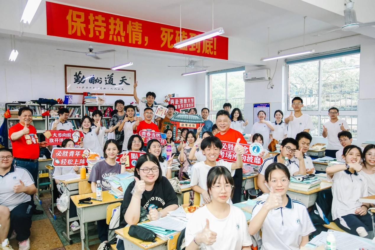 校领导身着“逢考必胜”字样的红色T恤走进教室,为即将面临高考的同学们加油打气,“一周后大家将奔赴高考考场,面对这场人生大考,愿大家满怀必胜信念,为长期以来的努力交上一份属于自己的满意答卷。”此情此景下,同学们都非常开心,“我们麓外学生每年都有关于‘逢考必胜’的期待,今年我们收获了不一样的必胜惊喜,这份美味将为我们即将到来的高考注入力量,给予我们更大的信心。”一位高三学生说道。