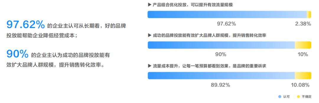 在效果广告主导中国互联网营销十几年之后,单纯追求流量的弊端开始显现。2023年,越来越多的企业开始意识到流量并不是品牌的终极目标,而只是营销的起点和工具,品牌建设的终极目标还是要建立消费者从认知到认同到认购到拥趸的链路,并要能够赢得消费者的长期信任,由此,品牌广告的投入必不可少。