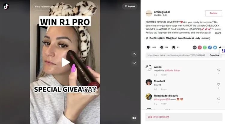 AMIRO相关负责人告诉品玩,虽然AMIRO也在试水TikTok内容营销初期,但已将与TikTok社群用户的长线互动,列入品牌战略之一。