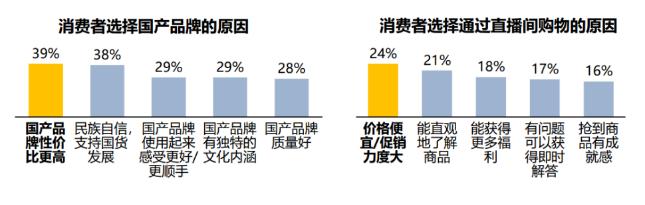 在这样的态度之下,消费偏好高性价比的特征更为突出,国产与直播成为消费者的实惠之选。