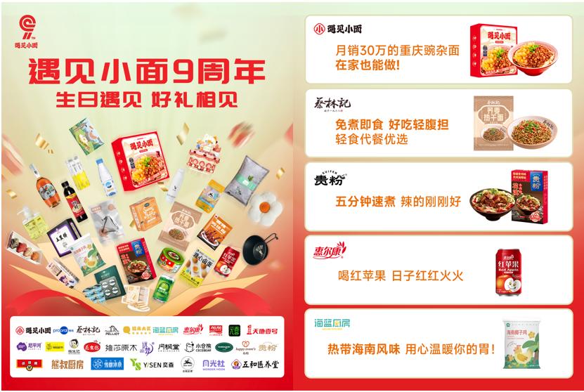 为了将九周年的祝福送给更多消费者,遇见小面还在小红书上面,跨界联名28个知名品牌,一起送出重磅福利。
