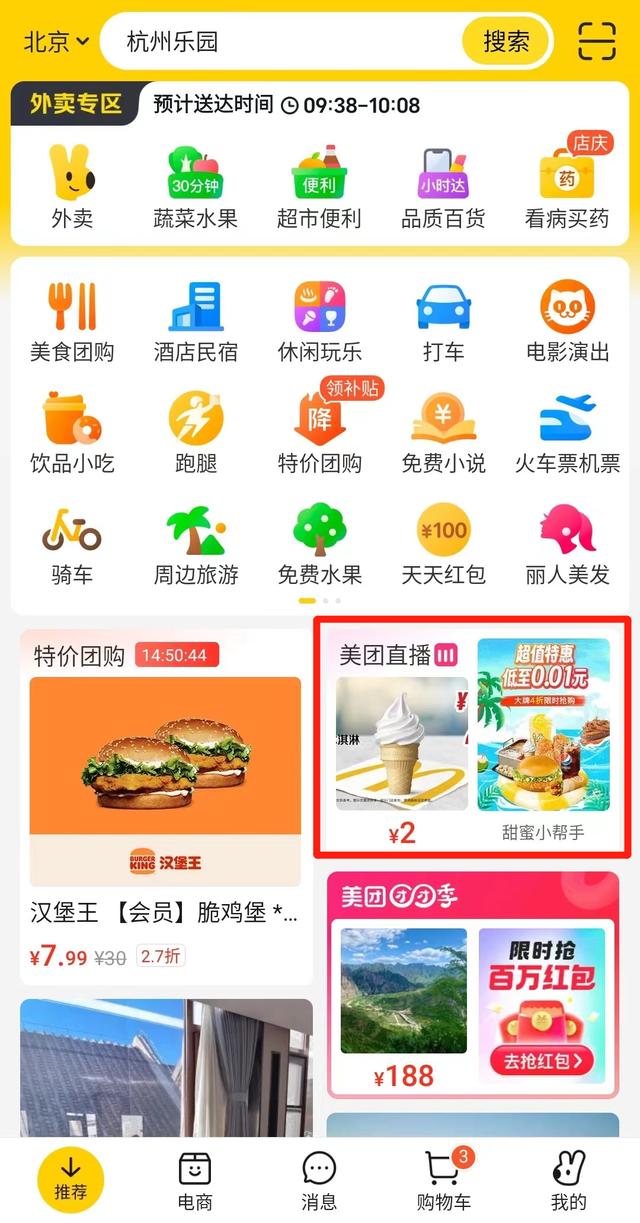 今年6月底,北京国贸白领张琪就在美团外卖官方直播间「神抢手」上囤了一批外卖券,那种捡到便宜的快乐让她有种恍惚,好像穿越回十年前团购兴起时的「百团大战」。那会儿她刚毕业,周末的一大乐趣是跟着手机上的团购券满城跑,开发好吃的餐馆;跳槽到互联网大厂后,周末时间也被工作分割得七零八落,当无意中发现美团大力投入直播,本着薅互联网羊毛的精神,她周末连着点了两天特价麦当劳。