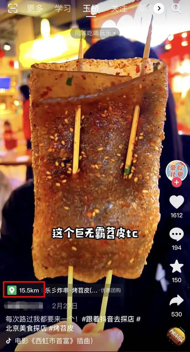 某平台的一场探店直播,位置显示距用户有15公里之远
