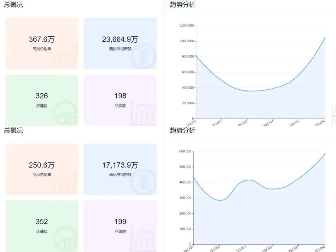 气泡水整体表现也不如去年。鲸参谋提供的京东平台气泡水行业大盘数据显示,2023年1月-6月,京东平台气泡水的总销售量为250.6万,低于去年同期367.6万;总销售额17173.9万元,低于去年同期的23664.9万元。