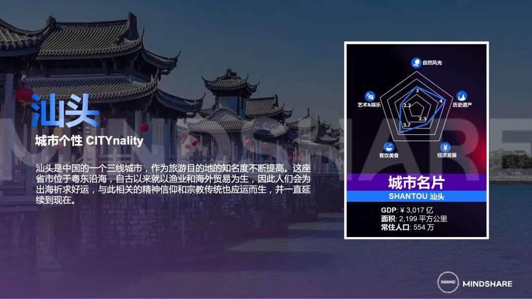 我们对以上城市进行全面剖析,洞察城市文化与不同品牌类别的契合点,以城市特有元素为核心,助力品牌打造专属体验。我们以汕头为例,对该城市部分特征进行深入分析,基于城市个性CITYnality的宝贵洞察和灵感启发制定可落地的实操方案。