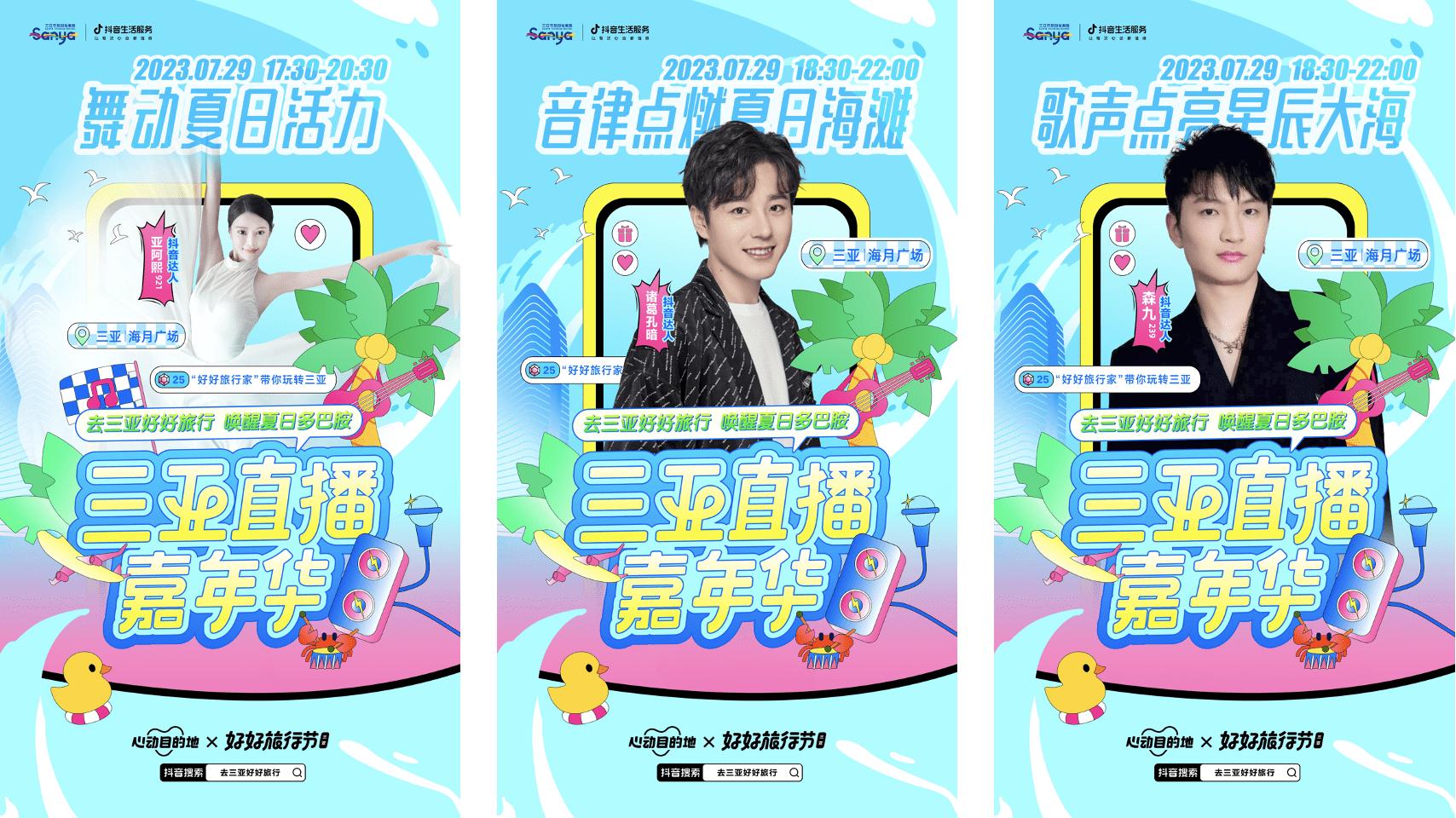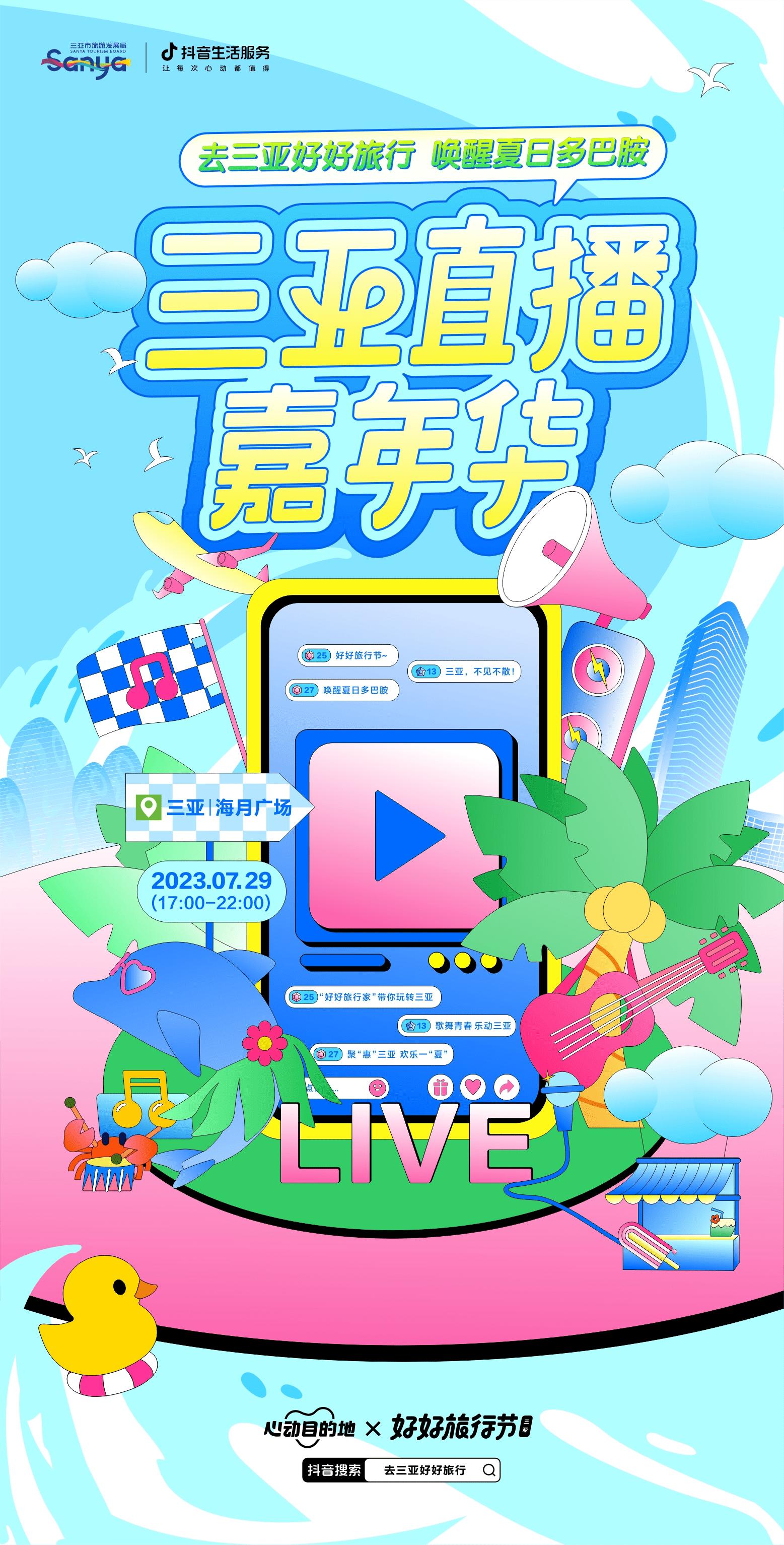 用清爽的音乐为夏日带来一抹清凉、用热情的舞蹈演绎三亚的别样韵味、用浪漫的美景编织沉浸式娱乐购物新浪潮。三亚市旅游发展局联合抖音生活服务共同启动2023(第二届)三亚城市旅游节暨好好旅行节,7月29日17点至22点在三亚海月广场将开启直播嘉年华活动。活动邀请抖音才艺达人、特色酒旅商家、优质团购达人,以夏日多巴胺氛围打开三亚特色文旅产品,届时大家不仅可以亲临心动现场,还可以在抖音观看直播预订心动之旅!多重才艺直播、多轮大额消费券派发、多个沉浸式互动游玩体验……这个夏天,让我们跟着这场直播嘉年华的节奏,让海浪与沙滩成为夏日度假标配,开启一场夏日多巴胺唤醒之旅吧!