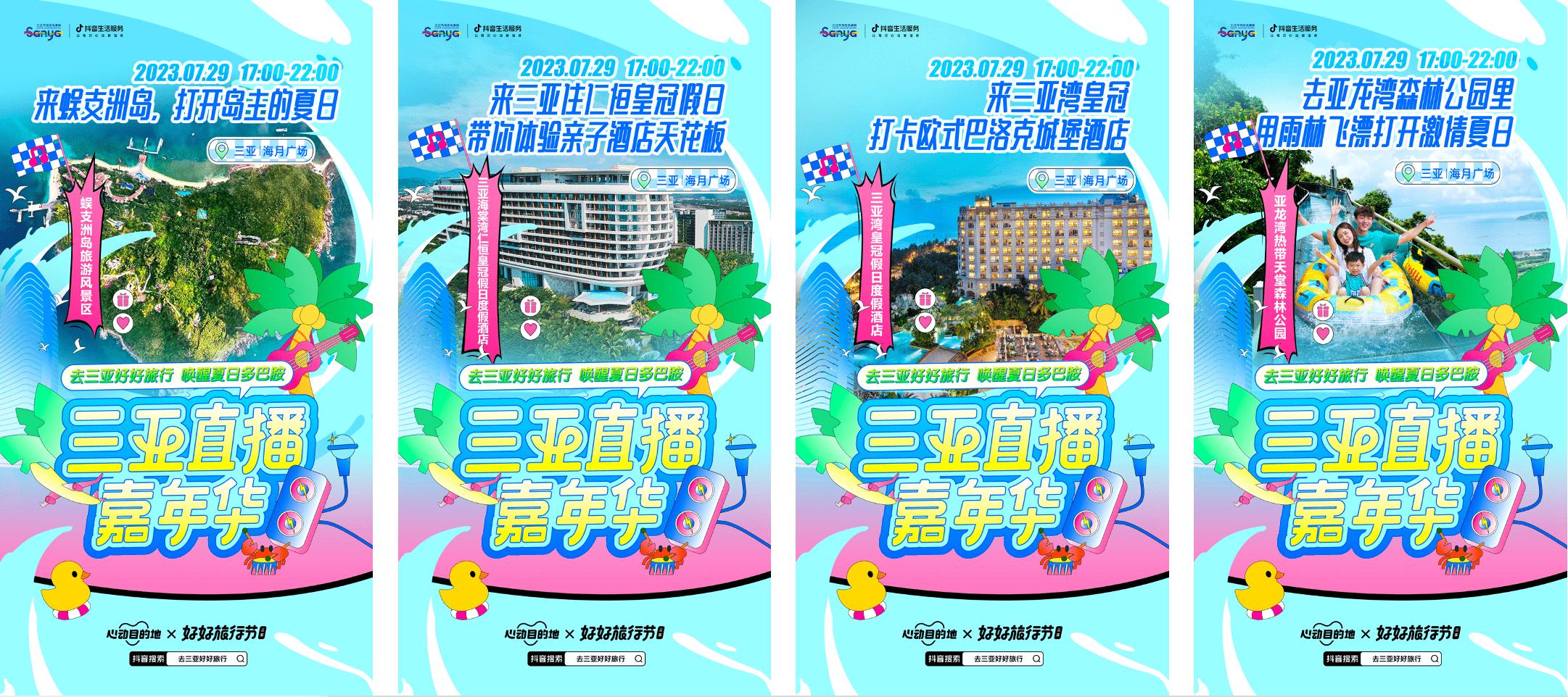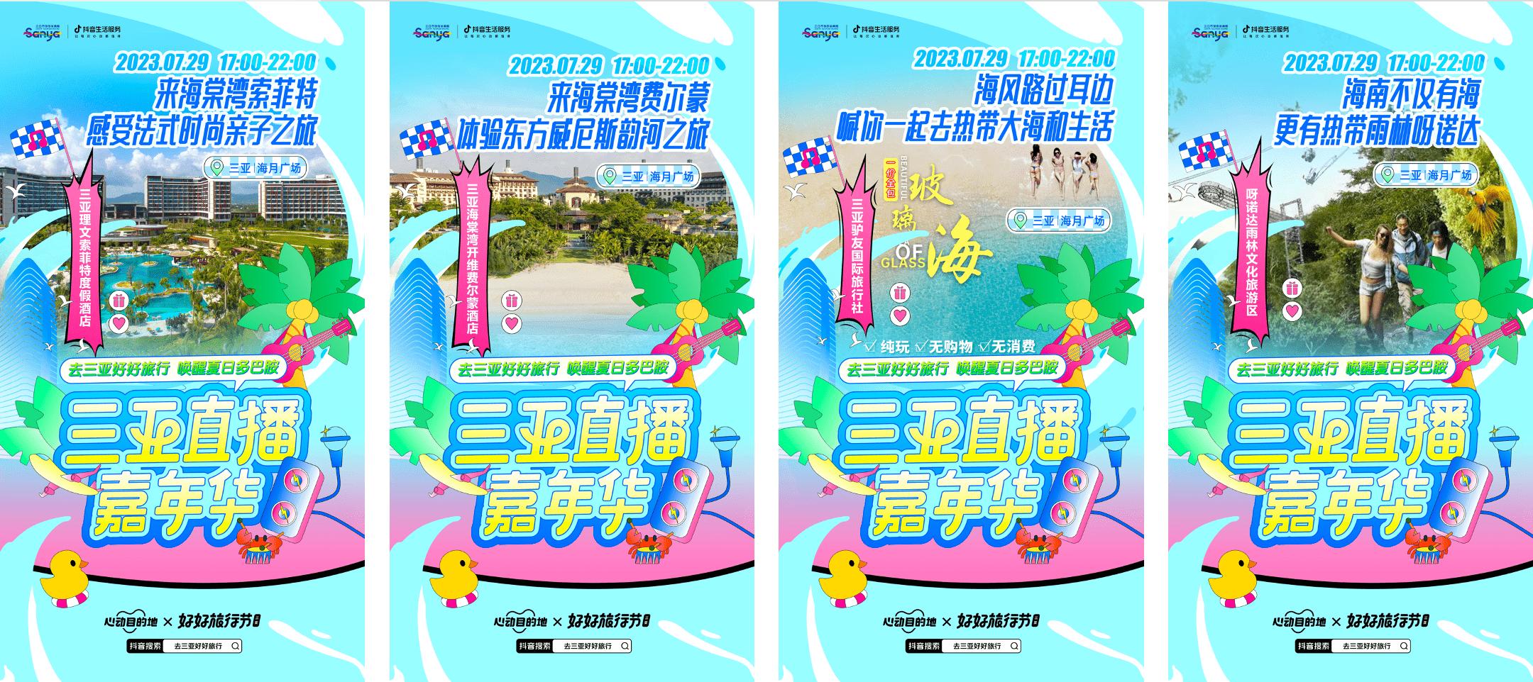 生活不止人海,还有辽阔大海。三亚作为抖音生活服务「好好旅行节」IP首站落地的目的地城市,不仅景点众多,各大星级酒店与特色服务更是不断地满足着消费者的多样化需求。本次活动旨在以“直播嘉年华”形式,在本地景区游玩、酒店住宿与消费者之间搭建起沟通的桥梁,丰富夏季多样化出游的团品和线路供给形式。同时,以达人、商家带领消费者沉浸式感受三亚本土特色,把“风景好看、酒店安逸、活动有趣、消费性价比高”的目的地特色讲好讲透,让三亚的文旅魅力和好商好品都能够被看见,让这座城市的每一个“心动时刻”都能被记录被体验。